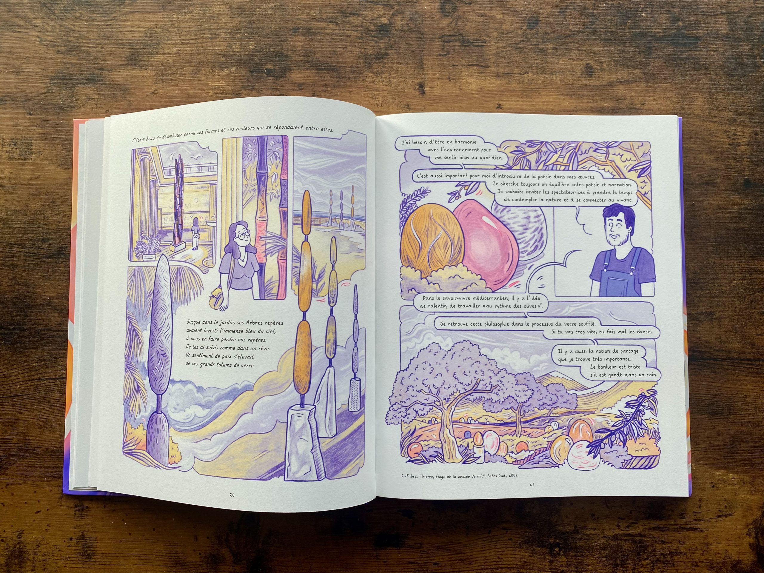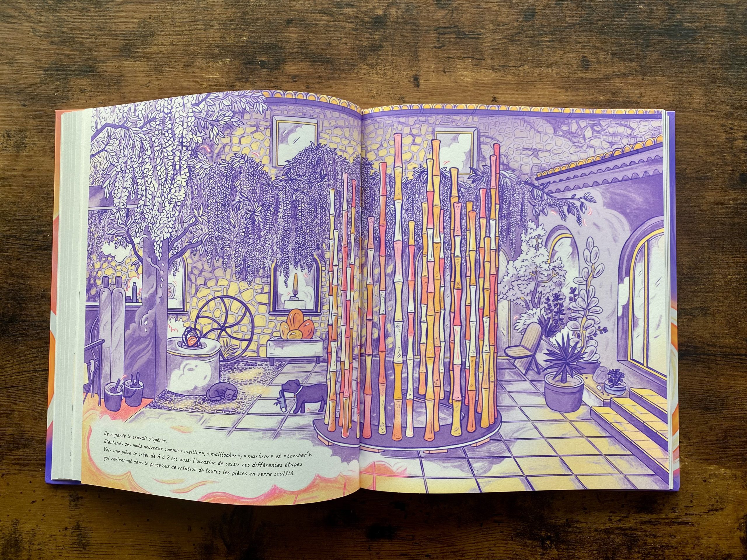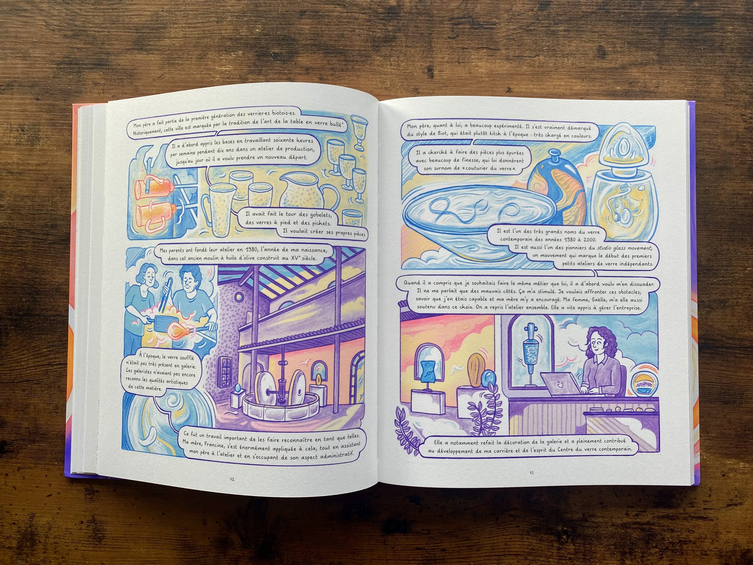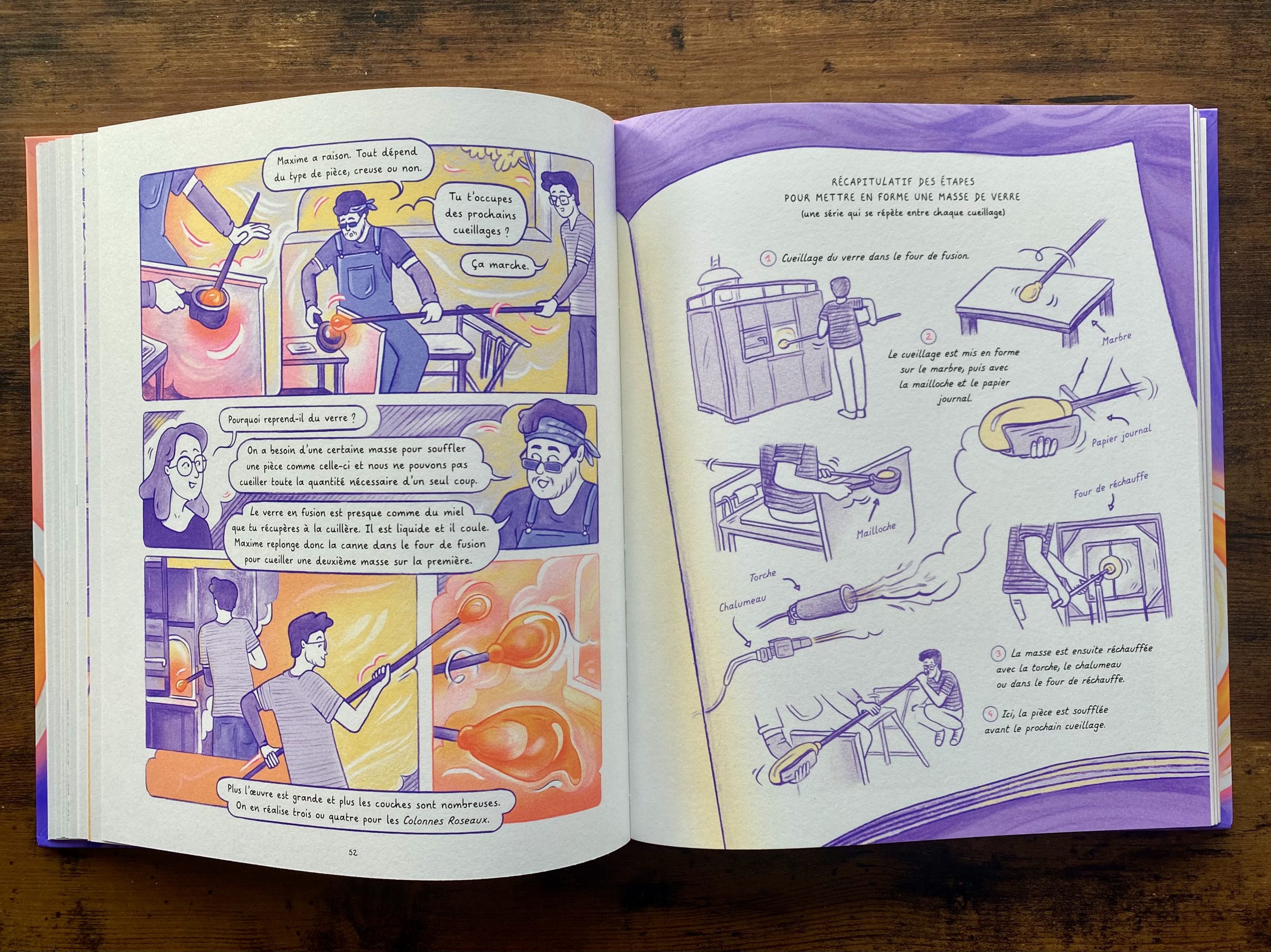 Le point de départ de ce reportage dessiné : la fascination de son autrice-illustratrice pour le soufflage de verre. C’est à travers le médium de la bande dessinée qu’elle décide de lui rendre hommage et de valoriser ces savoir-faire uniques.